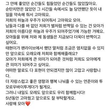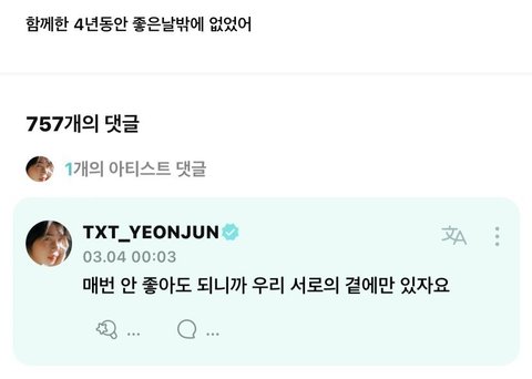 4주년때 연준이가 했던말 그리고 오늘 편지 읽고 다시 눈물 광광ㅠㅠ 연준이랑 우리 투바투 평생 함께하자구 사랑해 다섯별♡