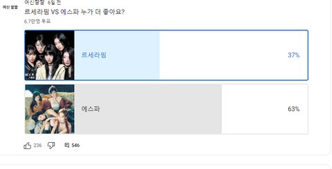 여전히 어그로 ㅈㄴ 끌리는거 보면 확실히 에스파가 화제성은 장난아님 ㅋㅋ