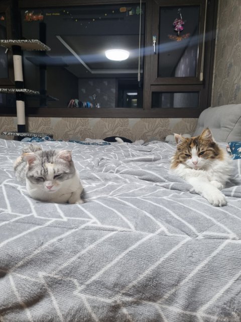 베리는 이제 집사들의 침대도 사용하고요. 물론 만지려고 하면 도망가지만요~