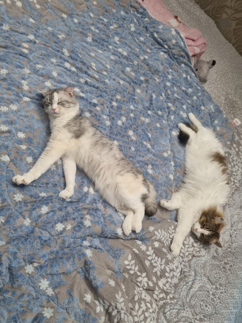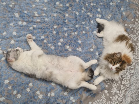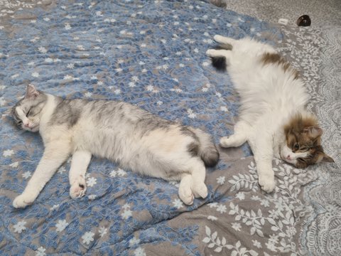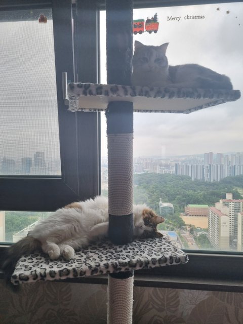 첫 번째 병원 방문 후 3개월 동안은 매달 가서 접종을 하였고 그때마다 남집사와 저는 10분-15분 또 실랑이 끝에 담요로 덮어 동물 병원에 데려갔습니다. 평범한 반려묘는 아니지만 첫째냥이와 똑같이 사랑으로 함께 하고 있어요~