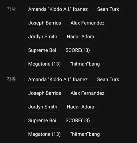 작곡 작사가가 많아? 다른 가수들 노래의 한 네다섯배는 됨