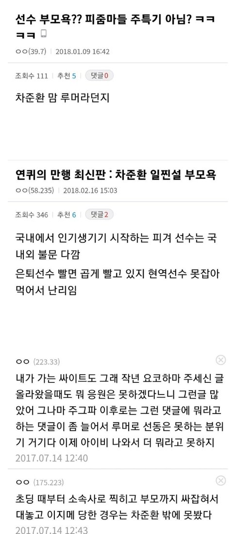 선수 부모님도 악플테러
