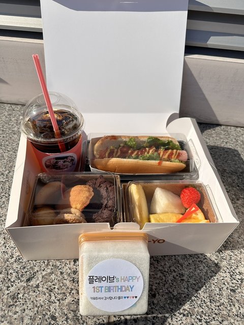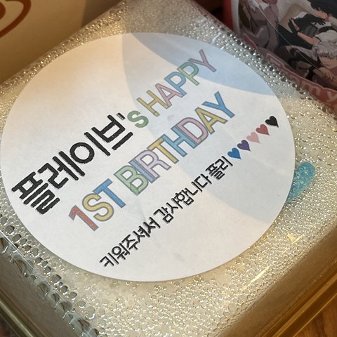 1주년이라고 떡에 첫 돌 써있음 귀여워