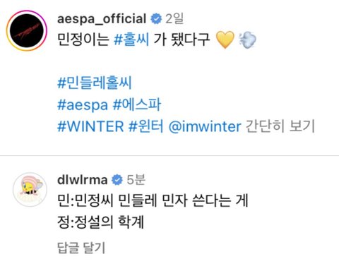 에스파 윈터 홀씨챌린지에 댓글 단 아이유