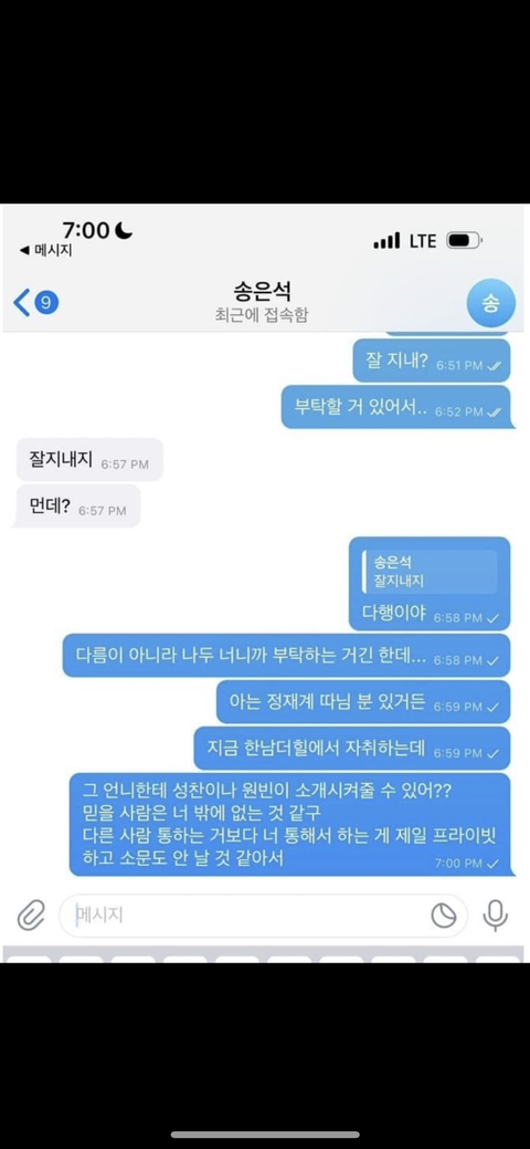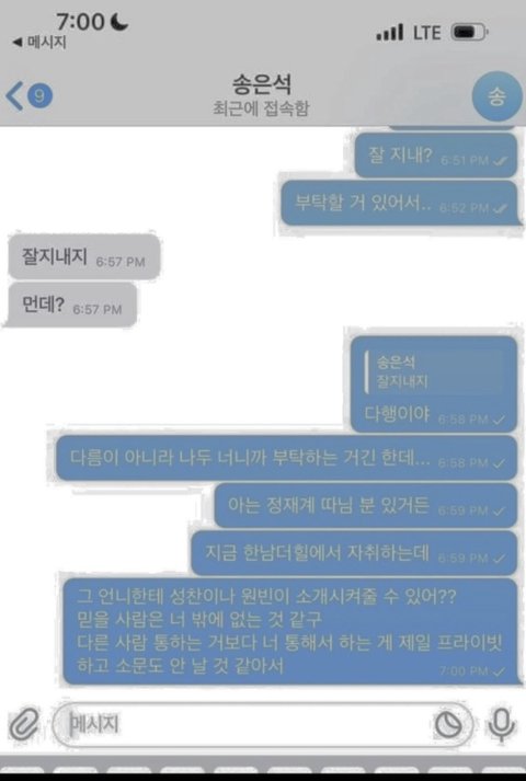 송은석 대화 다 뽀샵이었네ㅋㅋㅋㅋㅋ