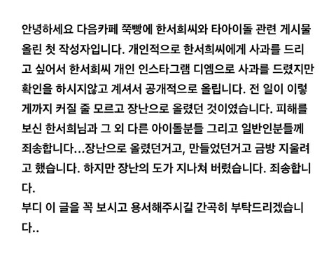 진짜 팬이면 믿어줘야하지 않냐고 하는데 진짜 팬들은 이미 다 눈치깠다 걍 거기서 한 행동부터 니 카톡 말투까지 그냥 시1발 다 너 그자체라 걍 눈물이나
