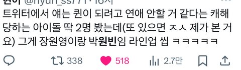 아 진짜 적당히 좀 해라 안지겹냐? 원희 이용해서 다른여돌 다 패면서 댓으로는 원희 까플 만들려는거 ㅈㄴ 티나는데 그리고 장원영 첫번째..