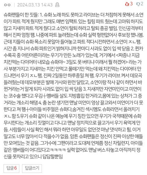 다니냐는 핀트나간 소리 해대는 슈화팬들 때문에 정리 박제함*