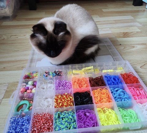 딸이 만들기하려고 꺼내면 그 위에 조용히 와서 앉아있어요
