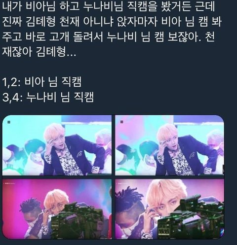 방송 카메라 꺼지고 자기 홈마 쳐다보는 방탄 뷔