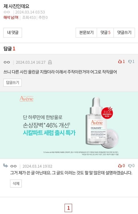 (본인 사진이 아니면 업로더가 타인의 사진을 도용한 것이 조사 들어가기 때문입니다. 하지만 사진 찍은 자세는 자기애가 있는데 글 내용은 자신을 못생겼다, 자존감이 낮다고 묘사하는 것에서 자기 사진이 아니라 타인 사진을 교활하게 도용하고 있다고 느껴집니다.)
