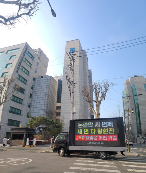 아무런 실질적 증거가 없는 짭썰타치 글에 그 내용도 사실과 어긋난것 투성이며 해당 관련자들 모두 본인이 쓴 게 아니라고 부정하고 글삭튀한 최초 유포자가 나와서 장난으로 작성한거다 죄송하다 사과문까지 올린 이 상황에서 모든걸 눈막귀막하고 하루종일 한 사람 붙잡고 조롱하며 그걸로도 모자라서 트럭까지 보낸 일당백 정병들아 적당히해 진짜 너무 나갔다고 생각안해?
