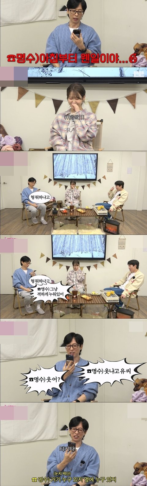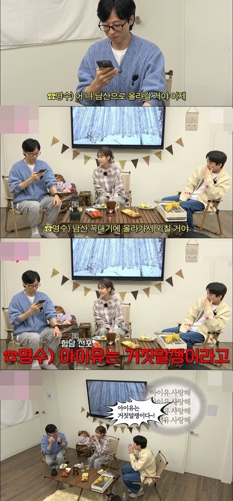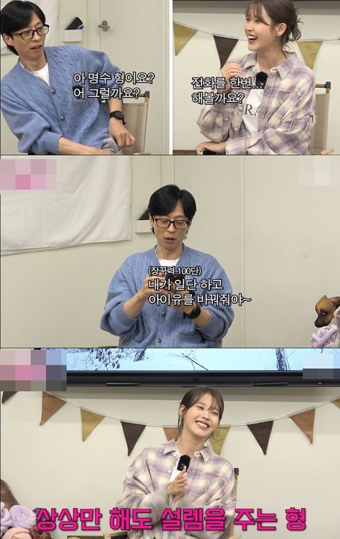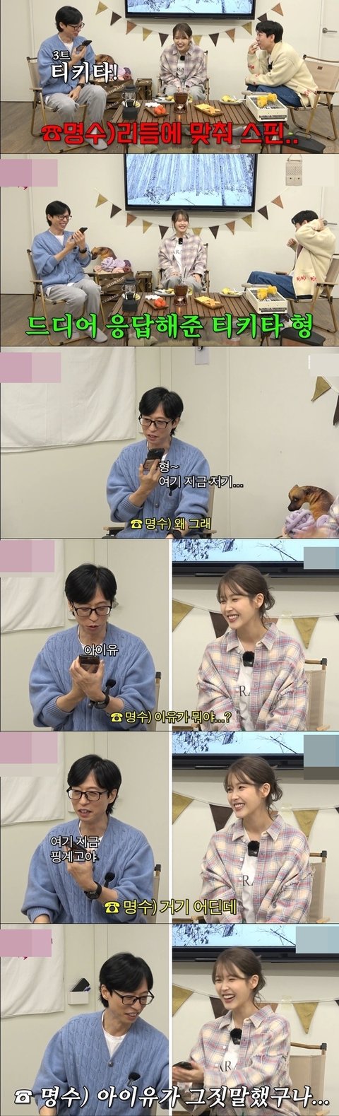 갑자기 유재석이 전화 거니까 옆에 누구 있는 거 알고 아이유도 옆에 있다는 걸 알게됨ㅋㅋㅋ