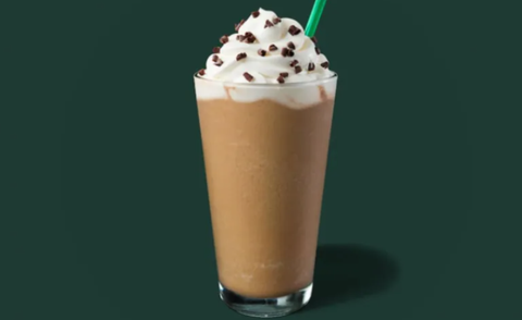 "얼음, 우유, 커피와 커피프라푸치노시럽, 바닐라시럽, 화이트초콜릿모카소스, 페퍼민트시럽 등 다양한 시럽이 들어있는 이 음료는 무려 470칼로리, 무려 설탕 73g을 자랑하는 설탕과 칼로리 폭탄입니다.