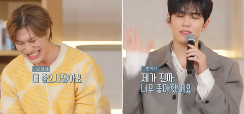서로 칭찬하기 바쁜 방예담과 데이식스 원필