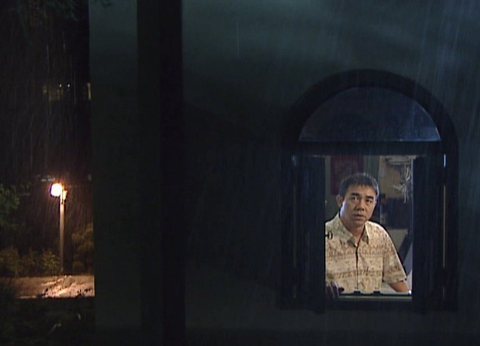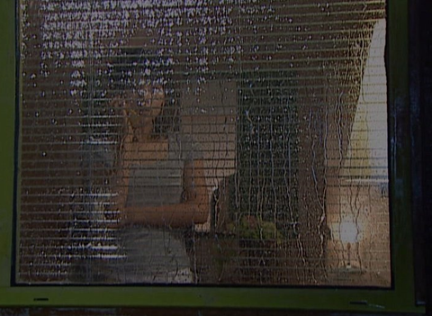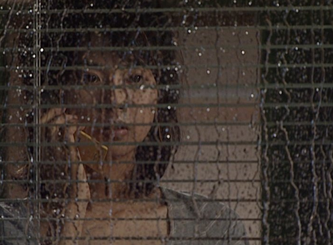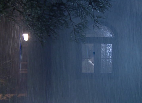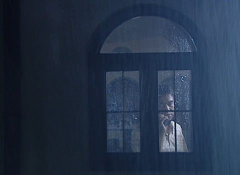 그 시각 윤경도 비 내리는 창밖을 보며 생각에 잠김