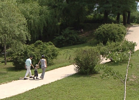아들 민영과 도심 밖 한적한 공원에 온 규철