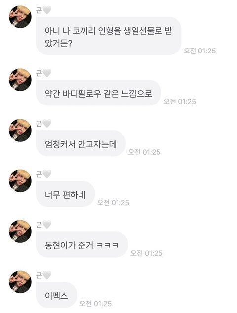 금동현은 비엑스한테 큰 코끼리 인형 줘서 안고 자고