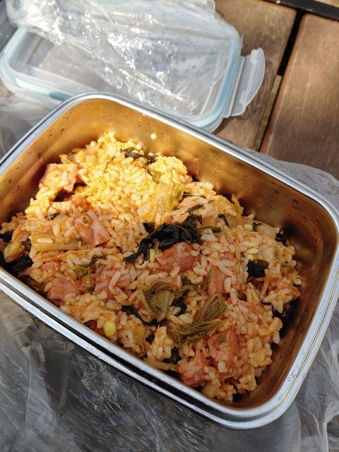 뒤젂인다음 하얀 쌀밥넣고 3분정도 볶아서