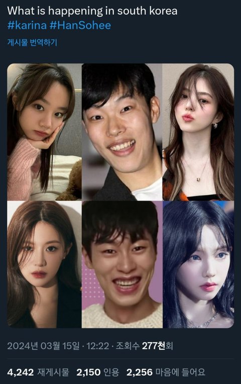 아니 류준열 혜리 이재욱 카리나 외에는 확실한거 아닌데 왜자꾸 끌어옴? ㅋㅋ 특히 고윤정은 대체 왜자꾸 끌어오노 사겼다는 증거도 없이 계속 ㅈㄹ이네