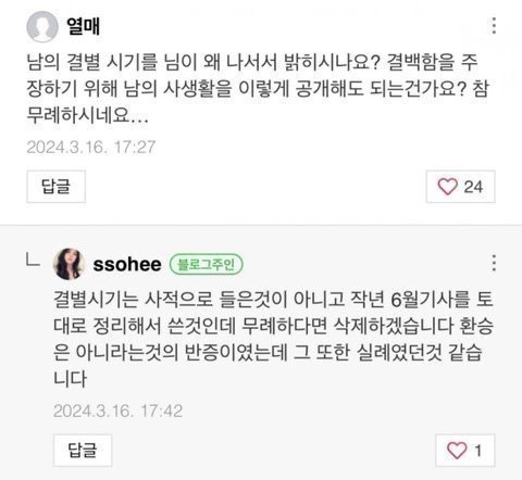 갑자기 결별 시기를 직접 들은 게 아니라고 함