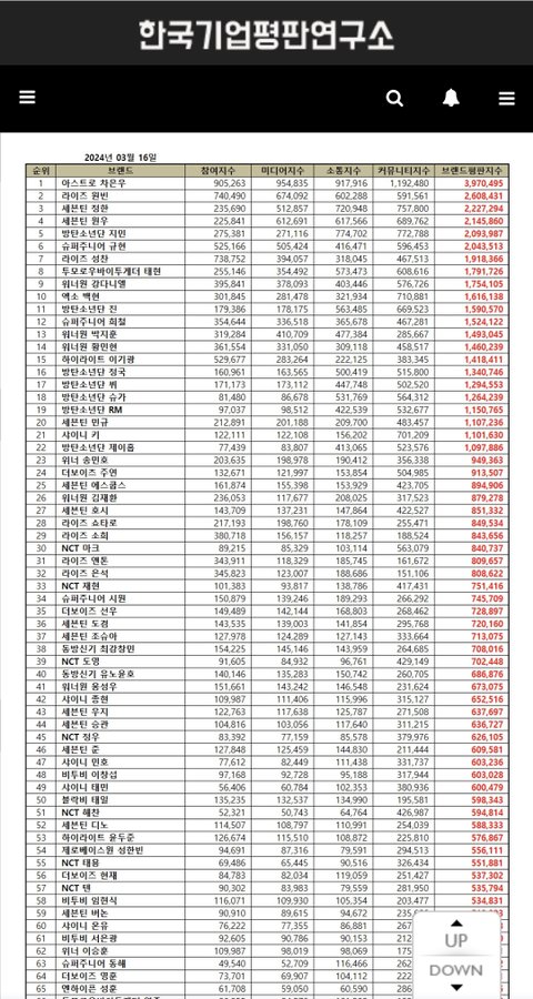 아이돌 브랜드 순위3월판 라이즈 ㅎ ㅏ ㅠㅜ..