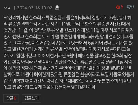 두 사람이 '진짜' 헤어질 결심을 한 건, 11월 초입니다. 7년의 사랑에 마침표를 찍은거죠. 결별 발표도 그 즈음 나왔고요. 그리고 류준열은 11월 15일 사진 개인전에서 처음으로 한소희와 인사를 나눴습니다.