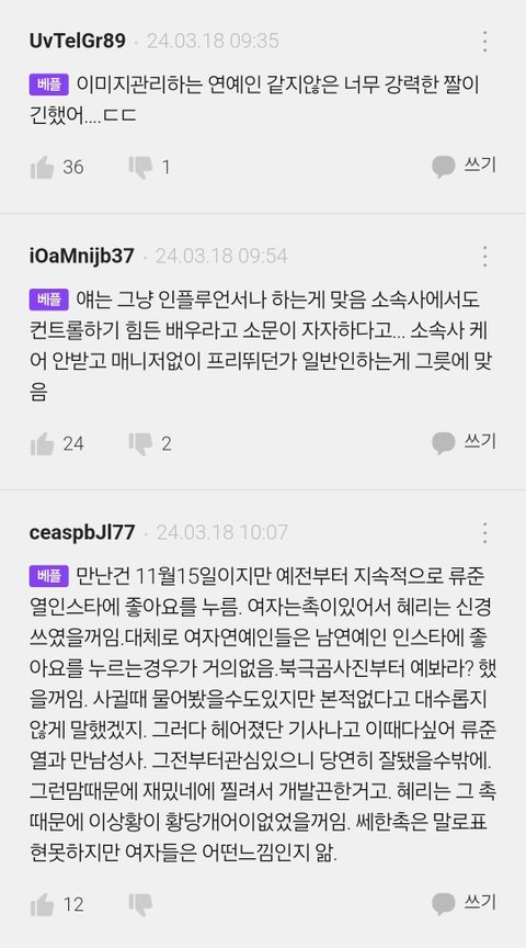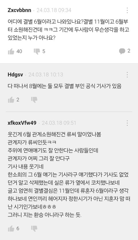 결국 류씨가 6월에 헤어졌다고 얘기한거네