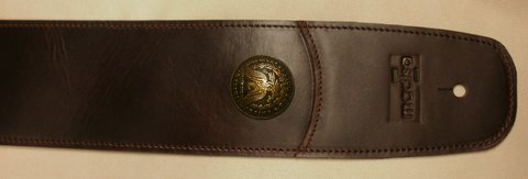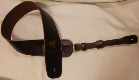 다크 브라운 컬러의 풀업 염색된 천연 가죽으로 제작한 빈티지 기타 스트랩(기타 끈)입니다.(마디샤)