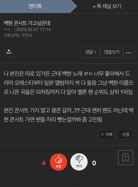 백현 콘서트 서치하다가 내가 1년전에 쓴 글 보고 웃겨서 글 씀..