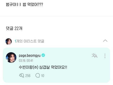 삼겹살 먹었대! 먹은거 와서 말하는거 왤케 귀엽지ㅋㅋㅋㅋㅋㅋㅋ 요즘 많이 바쁠텐데 맛난거 챙겨먹는거 너무 기특함ㅋㅋㅋ