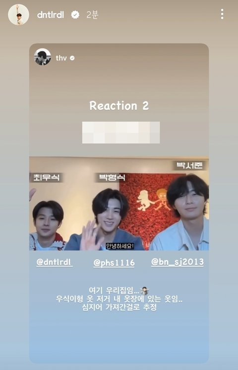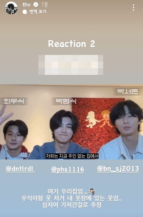 방탄 뷔 뮤비 리액션 하러 등장한 최우식 박형식 박서준