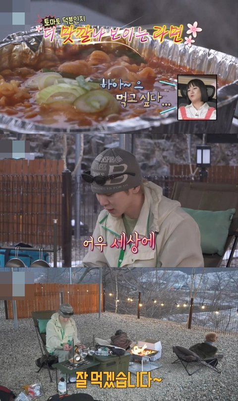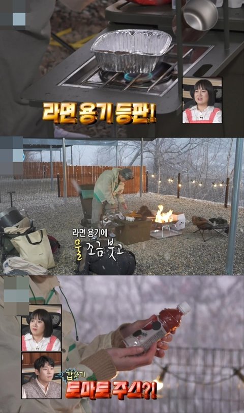 라면 별로 안 좋아하는데 캠핑 가서 먹는 토마토 라면은 맛있대