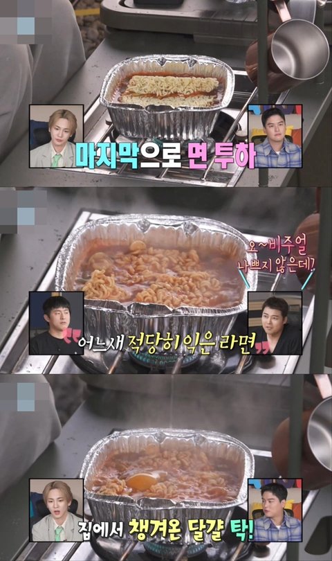 마지막으로 면 넣고 조금 끓이다가 달걀 투하