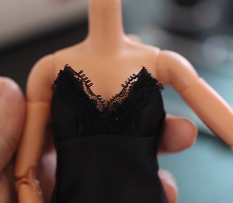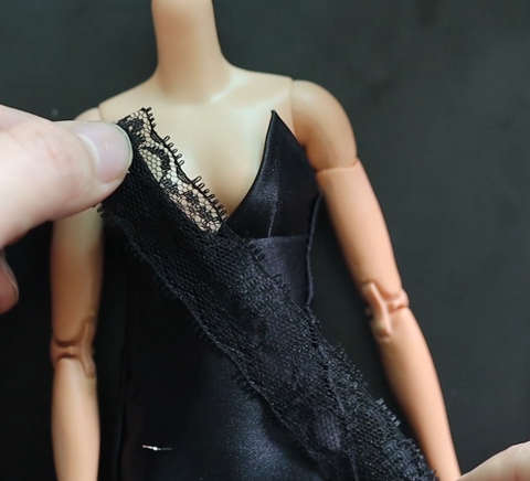가슴 부위를 레이스로 장식합니다