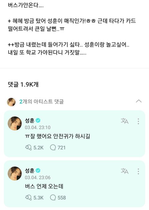 성훈이가 위버스 모먼트에 하트남기고갓어.. ㅋㅋㅋㅋㅋㅋㅋㅋ이남자너무귀여웈ㅋㅋㅋㅋ
