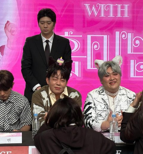 팬이 머리띠 씌워주려고하는데