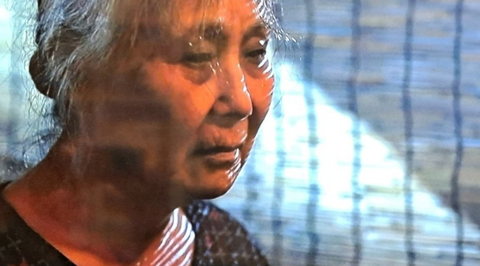 멍한 표정으로 다른 곳만 바라보는 두 할머니