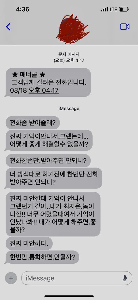 그후로 그놈에게 계속 전화 메세지가 오고 있다. sns도 탈퇴했더라.
