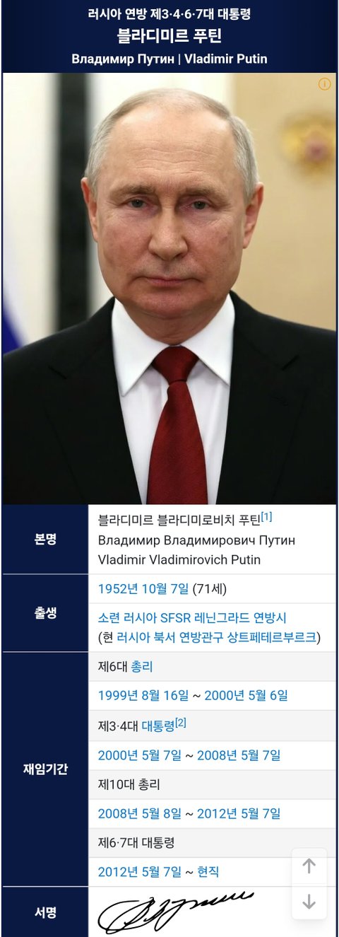 (사진2 설명) 블라디미르 블라디미로비치 푸틴(Владимир Владимирович Путин, Vladimir Vladimirovich Putin) 대통령 <출처 : NAVER 나무위키>