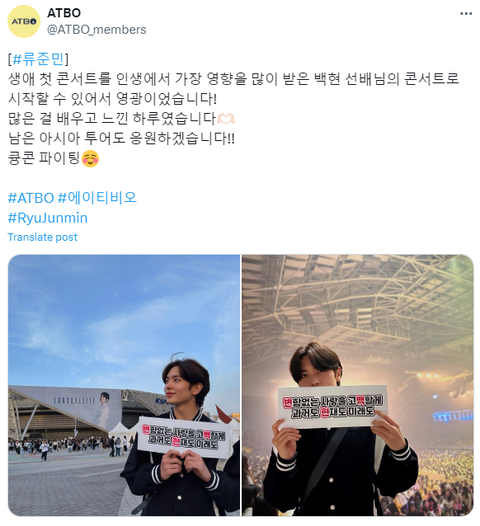 ATBO 류준민 큥콘 다녀와서 인증샷 남겼음