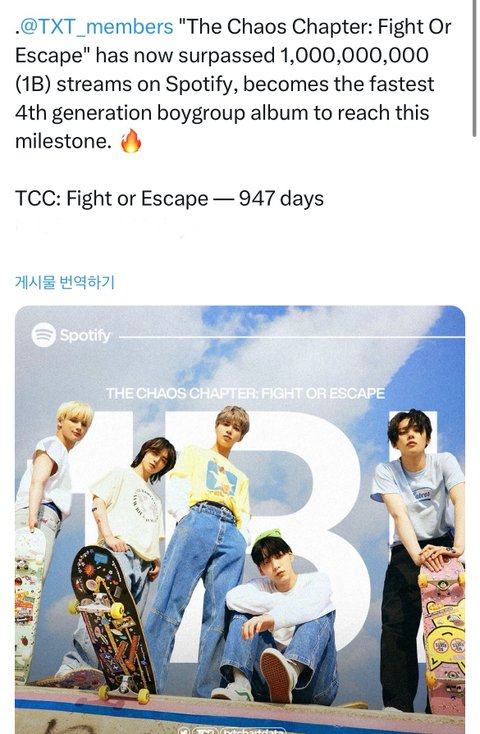 혼동의 장 Fight Or Escape 앨범 스포티 10억 돌파함
