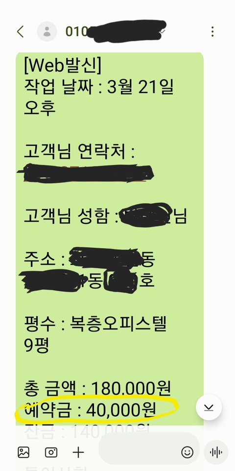 여자가 받아 통화하면서 당장 내일 시간된다고하길래 21일 오후 2시에 입주청소를 예약하고 문자로 명함과 송금할 카카오뱅크 구좌를 보내줘서 예약금을 업체대표에게 송금했어요.