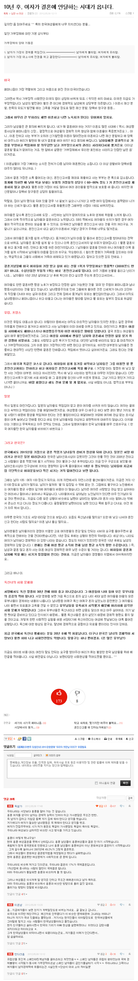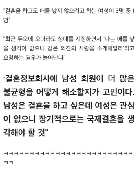 결혼 원하는 비율도 성비도 남성이 높은데 그나마 비혼 비출산 하려는 여자들 기하급수적으로 늘고 있어서 남자면 연애 결혼 둘 다 매우 힘든 시대임