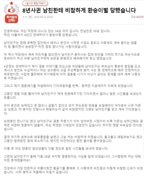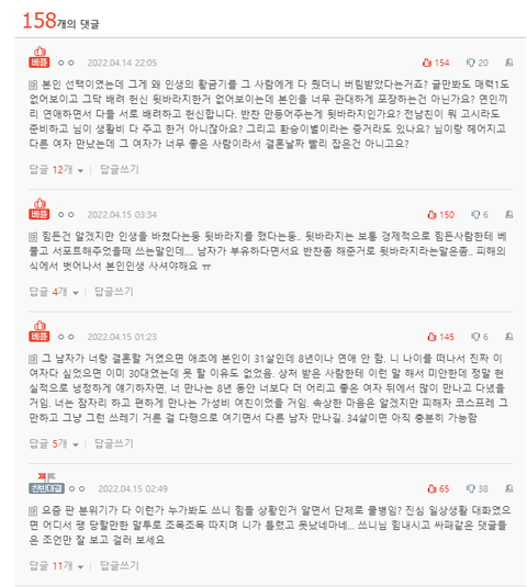 8년 사귀다가 뻥차고 다른여자랑 1년만에 결혼하면 누가봐도 뭐지 싶을텐데 왜 여자만 욕먹는지 모르겠음... 너무 돈많은 사람한테만 관대함