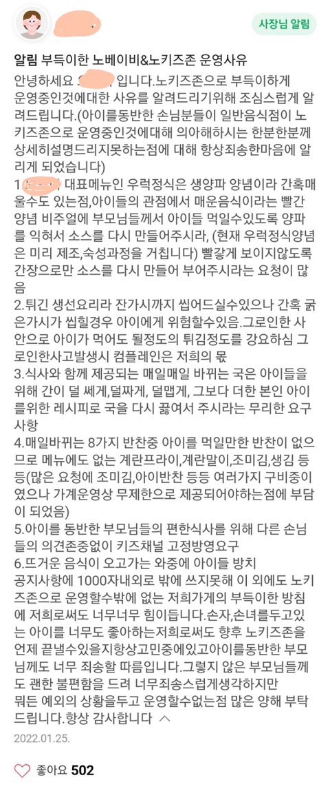 제주의 한 식당이 노키즈존으로 바뀌게 된 이유