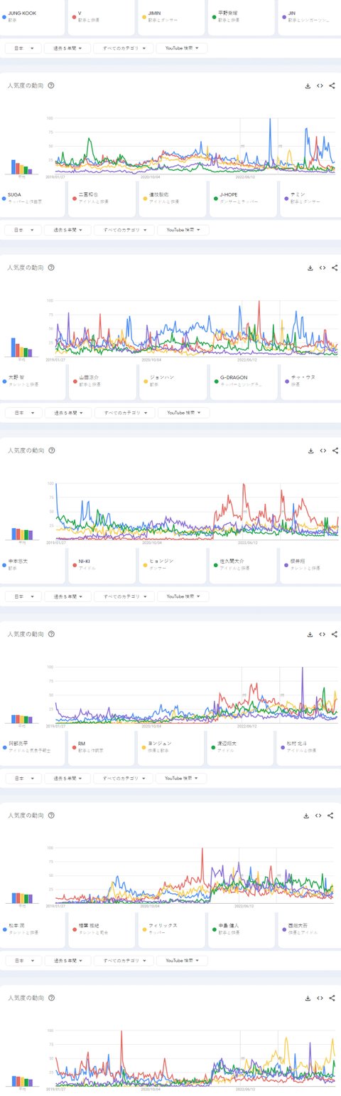 최근 5년간 일본 유튜브에서 가장 많이 검색된 남자아이돌 TOP30