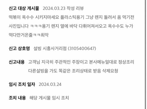 편의점 떡볶이보다 못한 떡볶이 배달해놓고