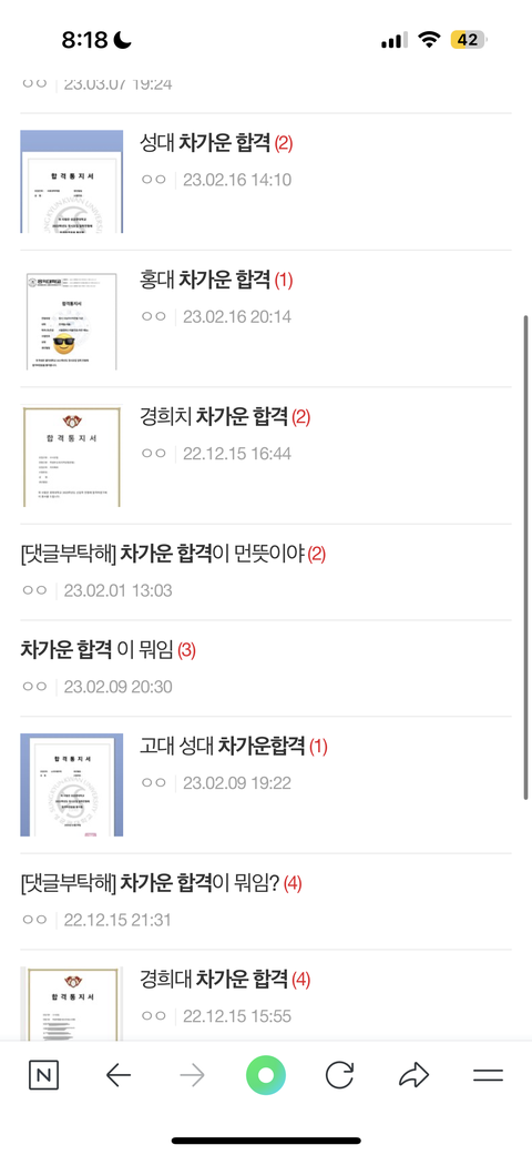 판에 차가운 합격 서치해서 보고 잇는데