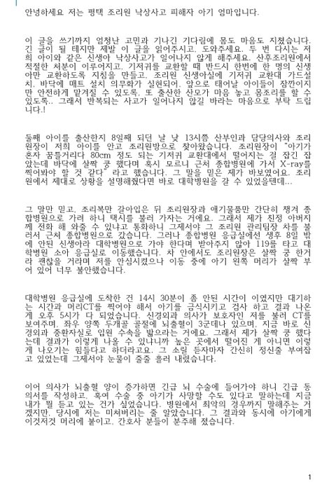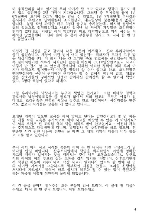 앞으로 태어날 우리 아이들이 두번다시는 이런 낙상사고가 발생하지 않도록 제가 목소리를 높일 수 있도록 힘을 실어주세요...!
